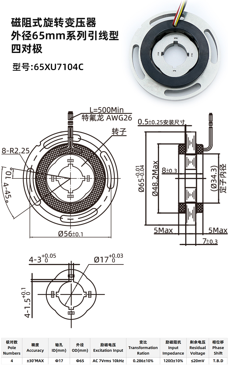 磁阻式旋变65XU7104D-旋转变压器