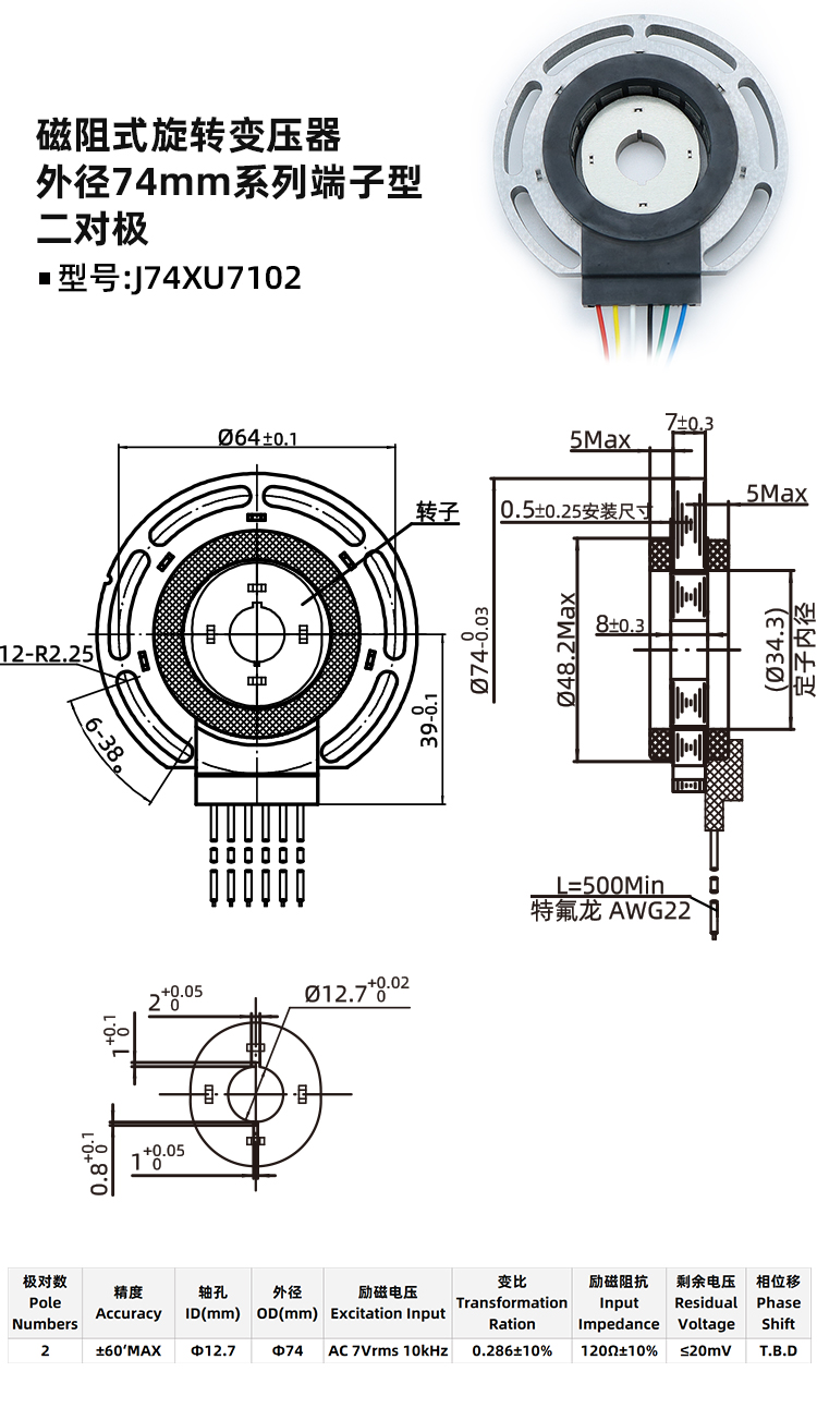 磁阻式旋变J74XU7103-旋转变压器