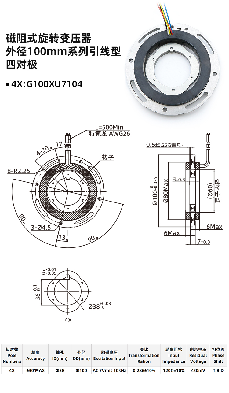 磁阻式旋变G100XU7106A-L2-旋转变压器