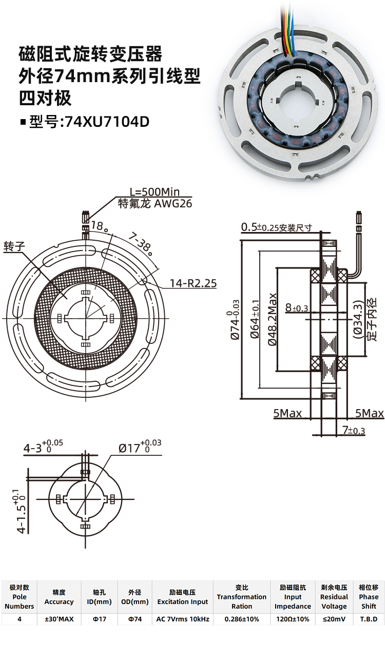 磁阻式旋变74XU7104E-旋转变压器