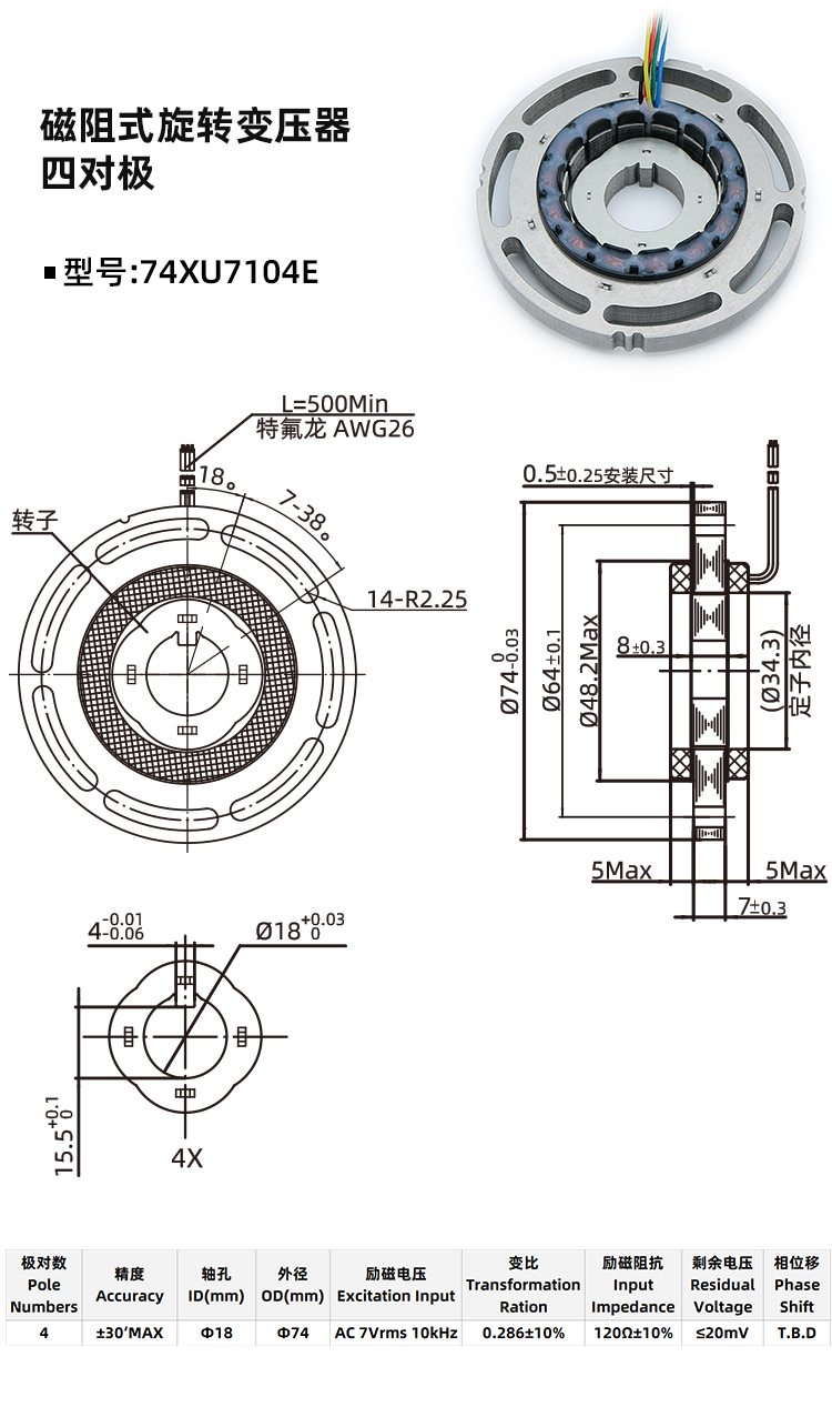 磁阻式旋变74XU7104E-旋转变压器