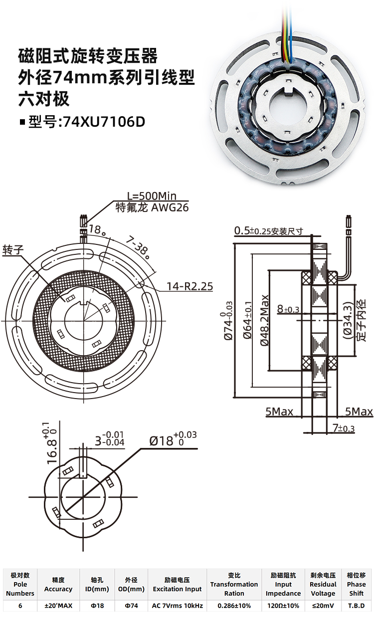 磁阻式旋变74XU7106D-旋转变压器