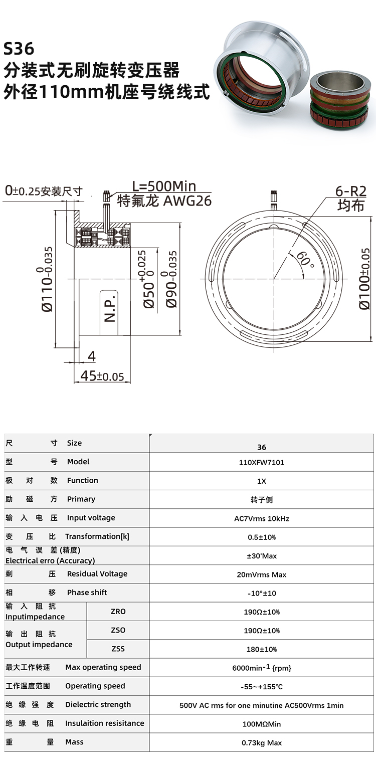 无刷绕线式旋变J75XFW7101-旋转变压器