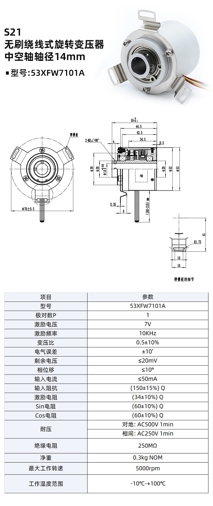无刷轴伸式旋变53XFW7101A-旋转变压器