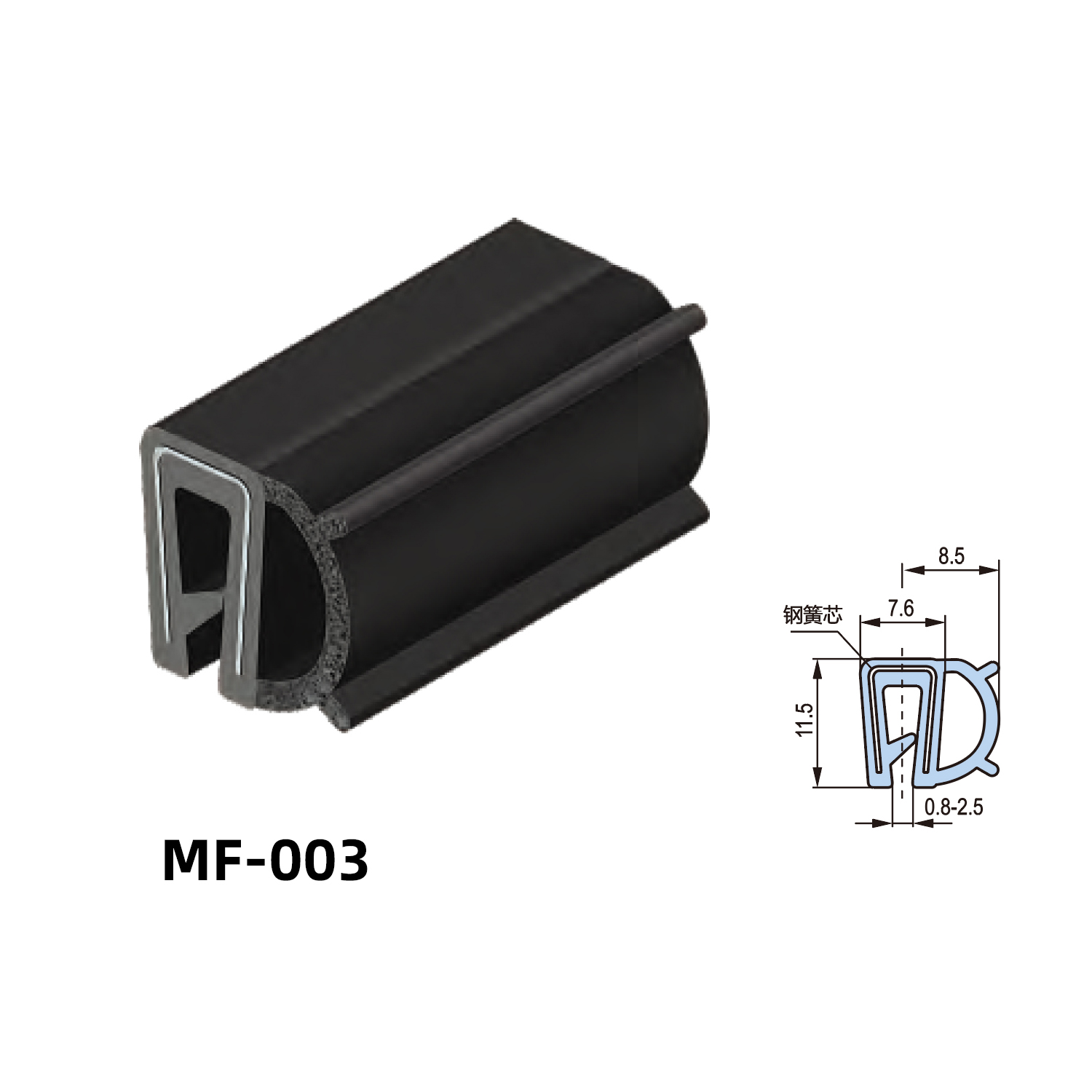 Black EPDM sealing strip(with steel sheet )